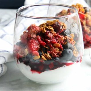 An easy baked dessert with a delicious crunchy topping! This Mixed Berry Crisp is a great way to use up those summer berries!