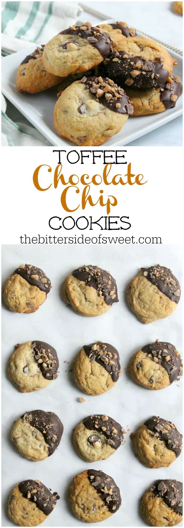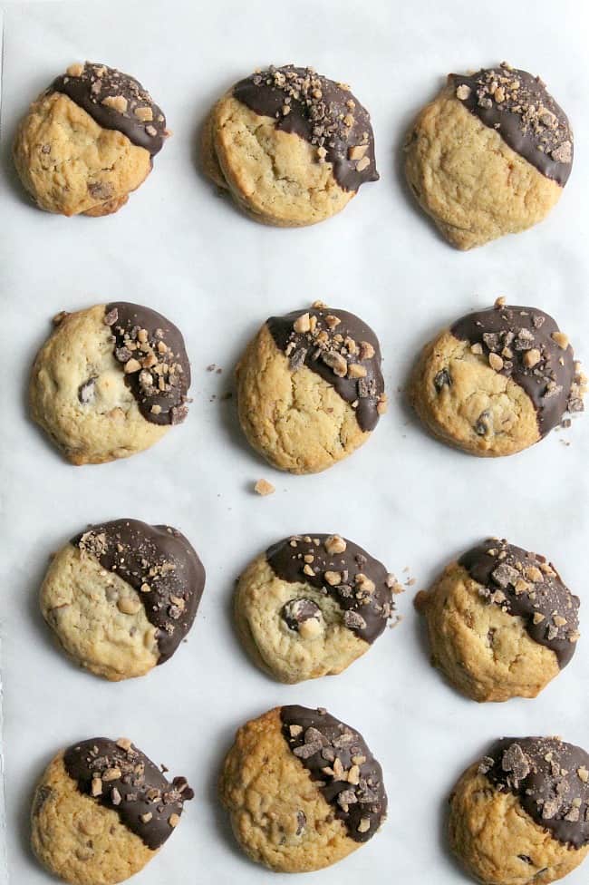 How do you make chocolate chip cookies even better? Dip it in chocolate and add some toffee.
